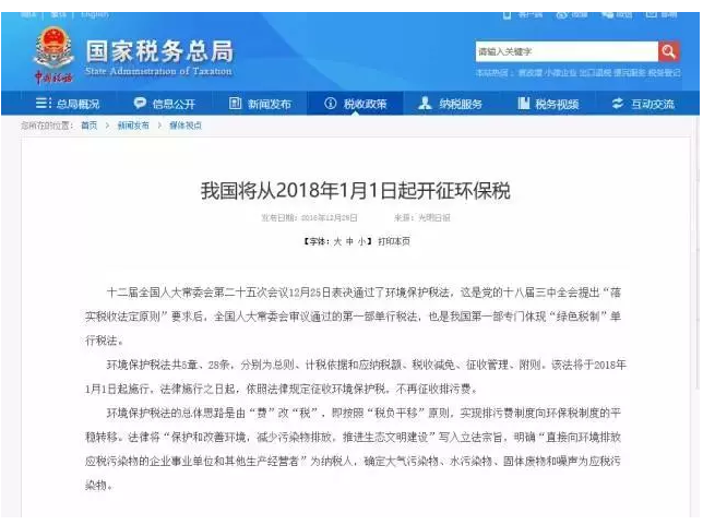 二、我國(guó)將從2018年1月1日起開(kāi)征環(huán)保稅