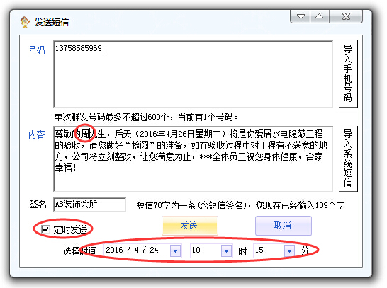 在短信內(nèi)容里面填寫要發(fā)送給客戶的內(nèi)容。