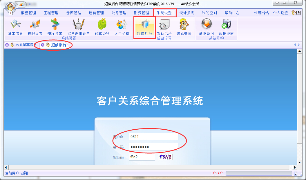 左鍵打開(kāi)公司基本信息,輸入由精拓公司給你的短信ID號(hào)碼,短信接口用戶名,然后自己設(shè)置一個(gè)登錄密碼,保存即可。